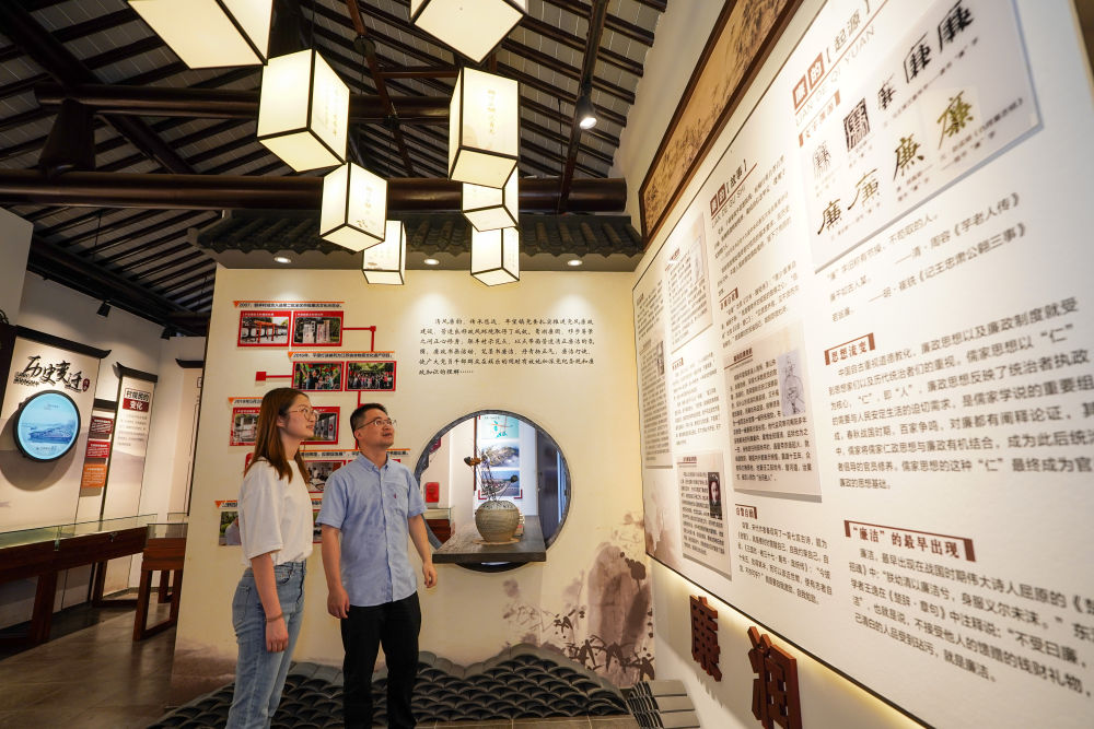 2024年7月4日,参不雅者正在姑苏市吴江区平望镇清廉教育莺湖廉园内参不雅。记者 李博 摄?。