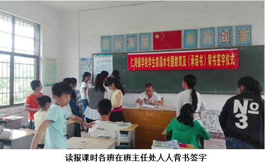 各班组织学生和家长旁不雅完《湖南省中小学生防止溺水警示教育专题片》,并要肄业生和家长正在《致全体学生家长的一封信》上签字,让家长取学校配合教育勤学生,确保学生平安。